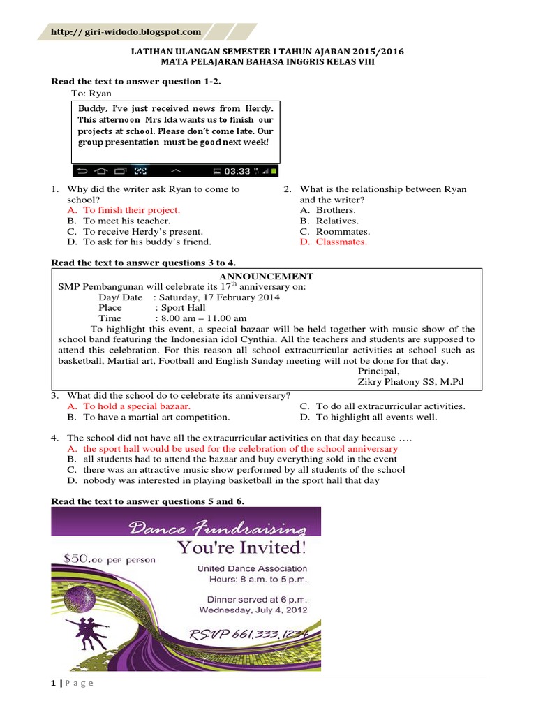 Soal Uas B Inggris Smp Kelas 8 Semester 1 Ganjil Soalbagus Com