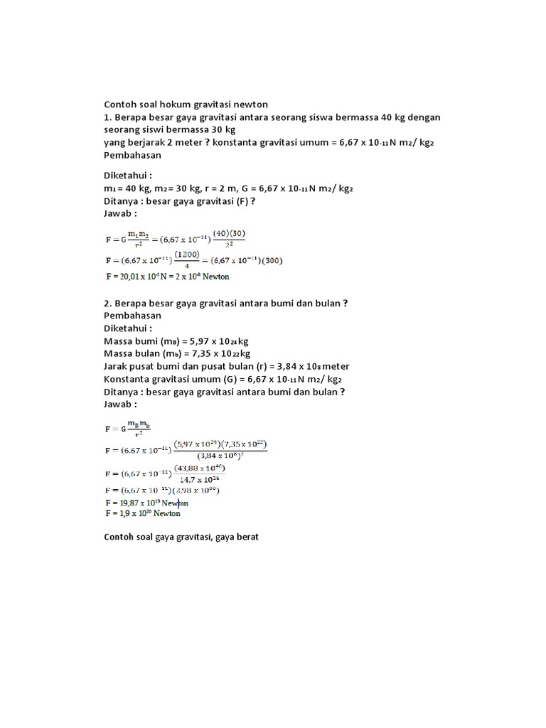 Contoh soal dan jawaban fisika kelas 10 tentang gravitasi. Soal -soal fisika gravitasi newton dan penyelesaiannya. Hukum gaya tarik gravitasi Newton dalam bidang fisika berarti daya tarik untuk saling berdekatan.