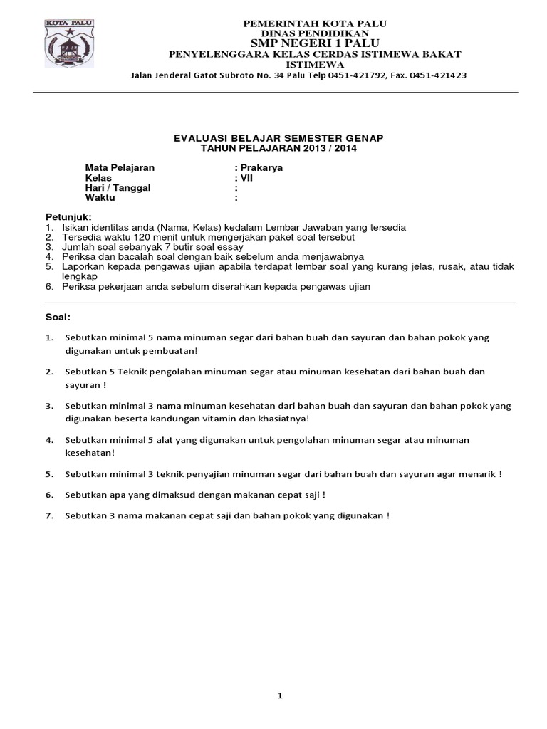 Latihan soal prakarya kelas 8 tahun 2013 slideshare. Ulangan Akhir Semester UASPAS adalah kegiatan yang dilakukan oleh pendidik untuk mengukur pencapaian kompetensi peserta didik di akhir semester. Contoh soal prakarya kelas 7 semester 1 dan 2 kurikulum 2013 dikesempatan kali ini yuksinau co id akan membahas materi contoh soal prakarya kelas 7 kurikulum 2013 pilihan ganda pg beserta jawabannya. Soal dan kunci jawaban pat.