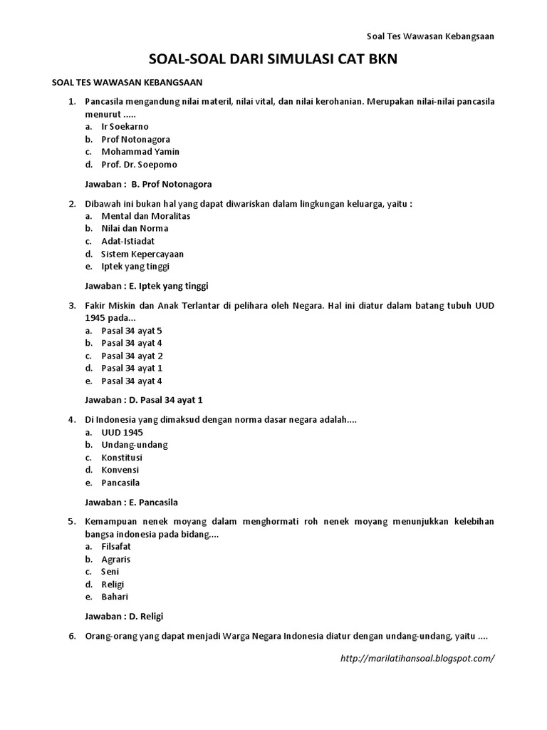 Kumpulan soal tes wawasan kebangsaan pdf. Pancasila UUD 1945 UUD 1945 ialah hukum dasar. Karakteristik pribadi tembus 150 jawaban simulasi cat. Kumpulan Soal Tes Wawasan Kebangsaan TWK.