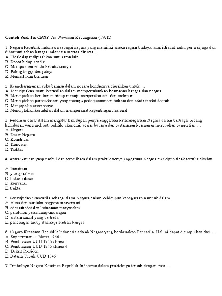 Pdf Contoh Soal Twk Cpns Tes Wawasan Kebangsaan Twk Gratis Muhammad Kamal Academia Edu